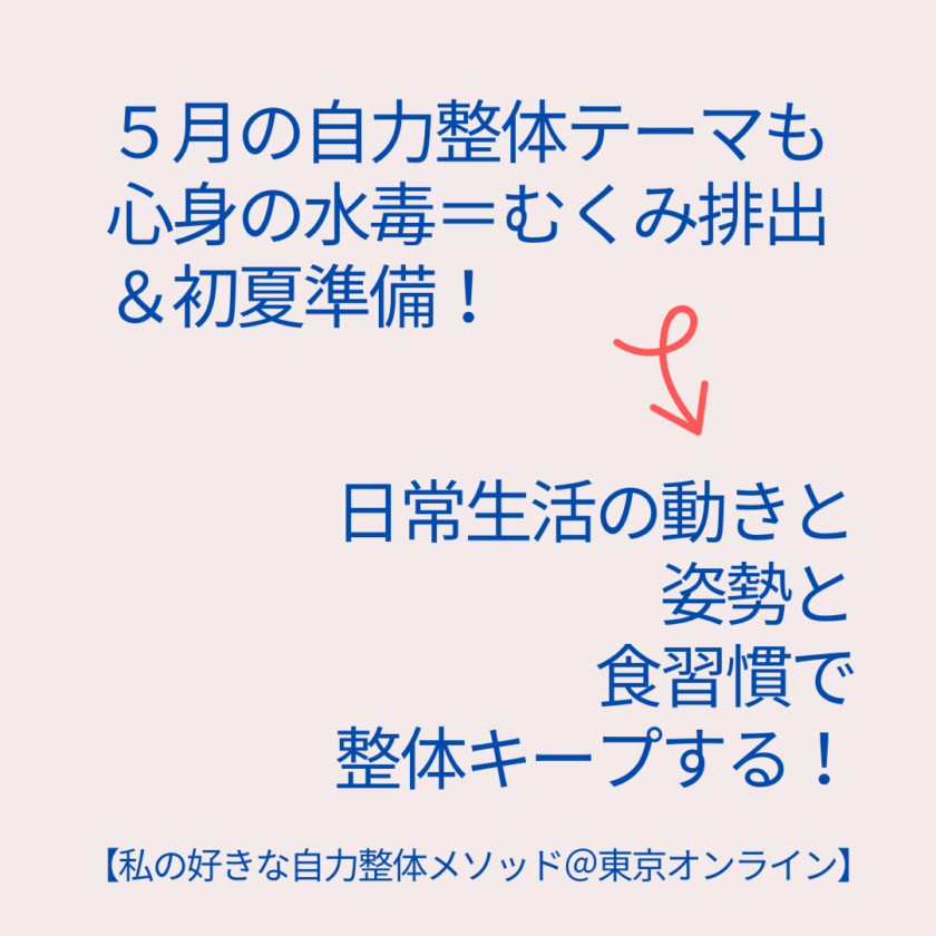 5月の自力整体テーマも水毒=むくみ体質改善+初夏準備もね!