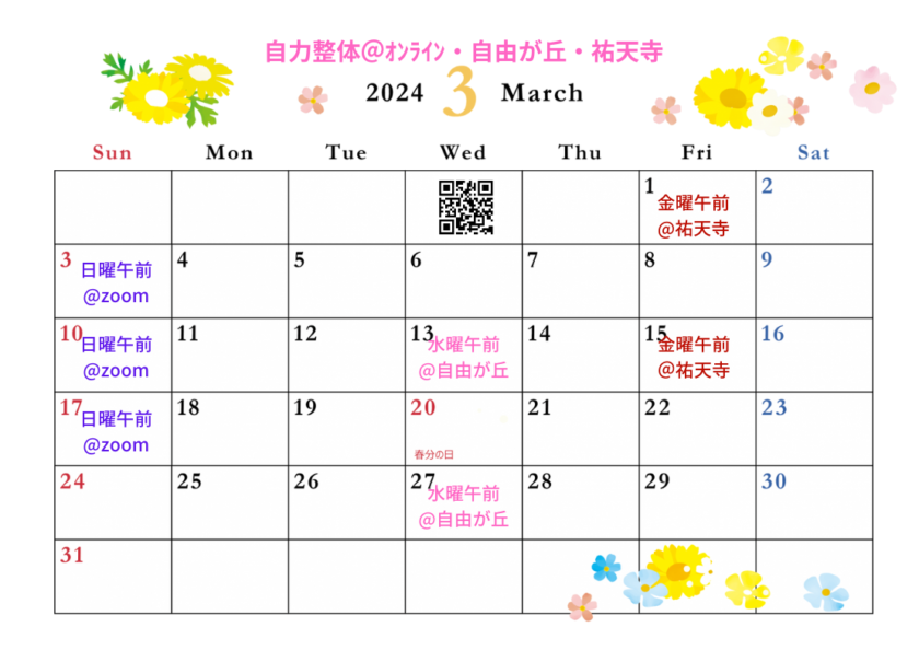 2024年3月の自力整体グループレッスン☆カレンダー