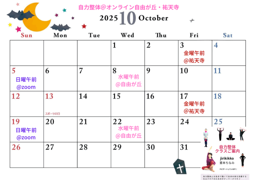 10月の自力整体クラス@東京目黒(自由が丘・祐天寺)オンラインのご案内です!